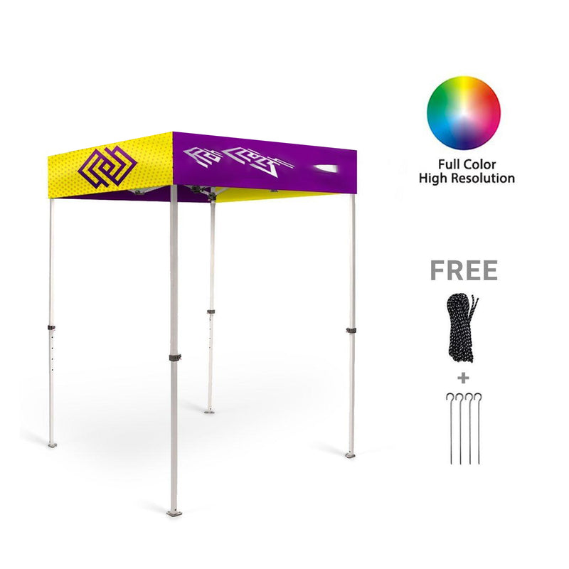 These 6' x 6' custom canopy tents are made from durable 600 denier polyester or eco-friendly GRS-certified fabric, featuring an 8 oz graphic weight for bold, weather-resistant branding. Designed for both strength and ease of use, they include a pop-up aluminum frame with 1.6" telescopic legs that adjust to three different heights, offering an adjustable height from a minimum of 101" to a maximum of 135" - making them ideal for outdoor events. They are also UV-resistant for convenient outdoor usage.