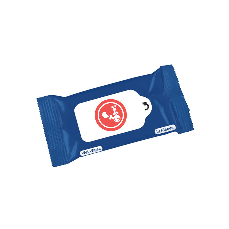 Antibacterial wet wipe packet for staying germ-free with a light citrus scent. Contains 10 Wipes. Light Citrus Scent. Active ingredient: Benzalkonium Chloride. Not an alcohol sanitizer. Meets FDA Requirements.