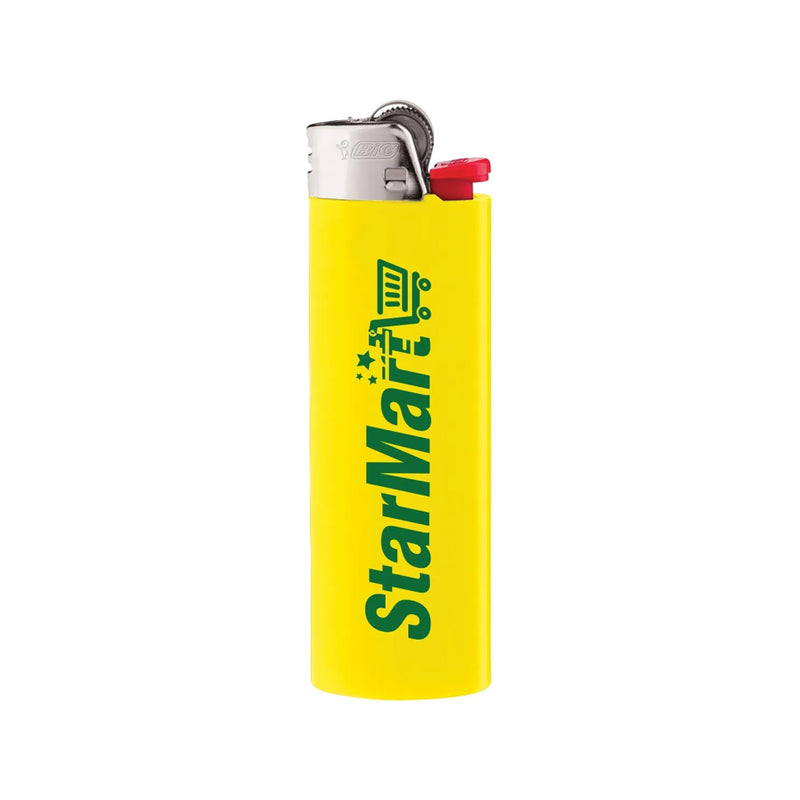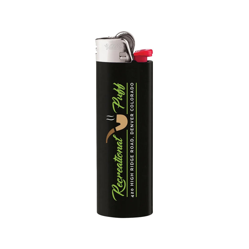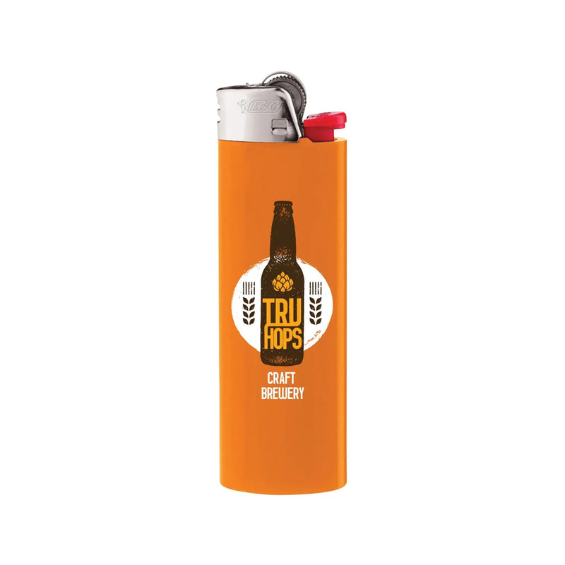 BIC® Maxi Lighter. High quality, and long lasting. BIC® lighters last up to 3000 lights. That means up to 3000 times your business is advertised on a single lighter, for less than a penny per impression. Comfortable to hold and use. Available in 8 colors. Made of Derlin plastic. There is a safety warning label affixed to the back of each lighter.