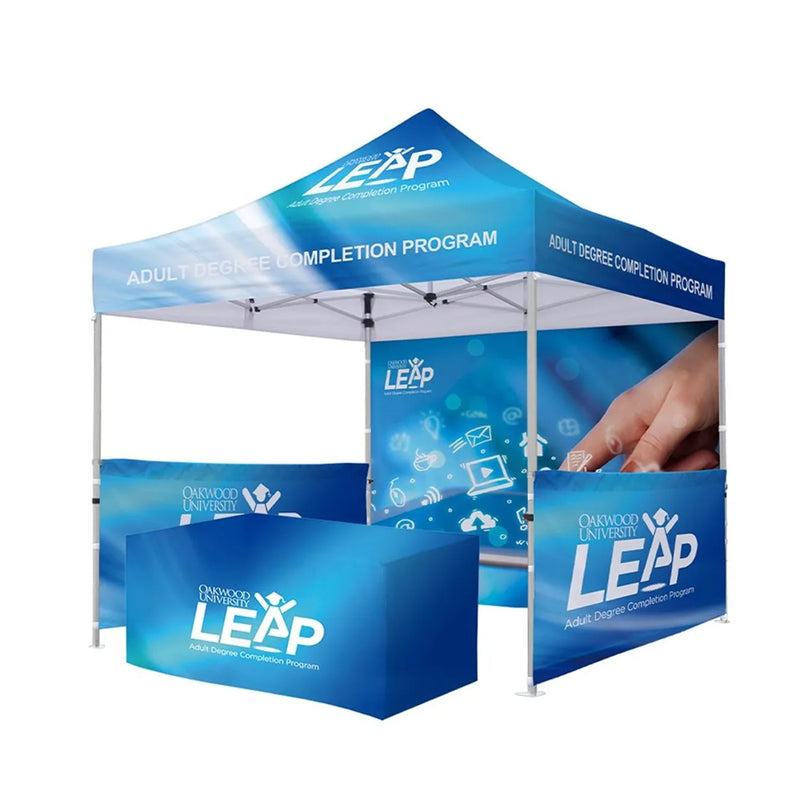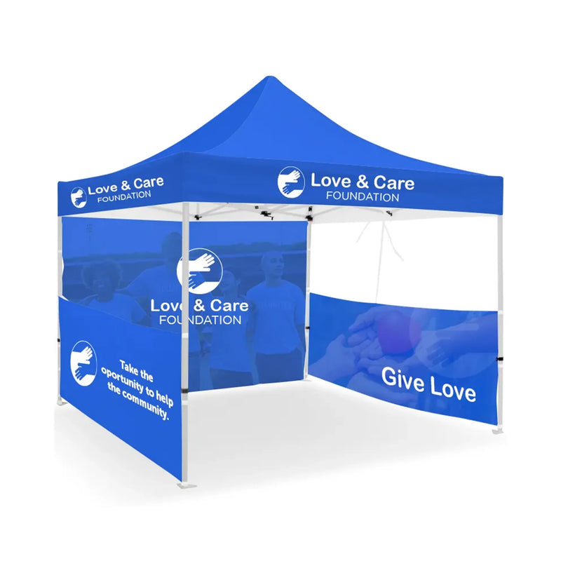Personalize your trade show tent with full-color printing, various sidewall configurations, easily attachable toppers and unique branding elements to match your vision. You can also choose to include an add-on frame for complete structural support. Easily upload your own artwork or design online according to your need.