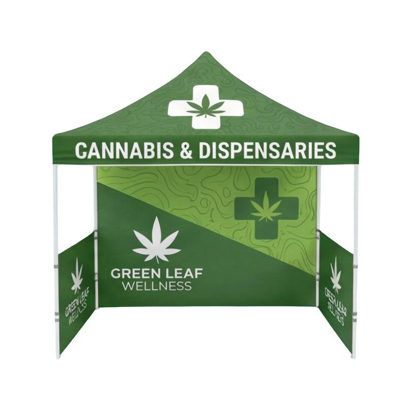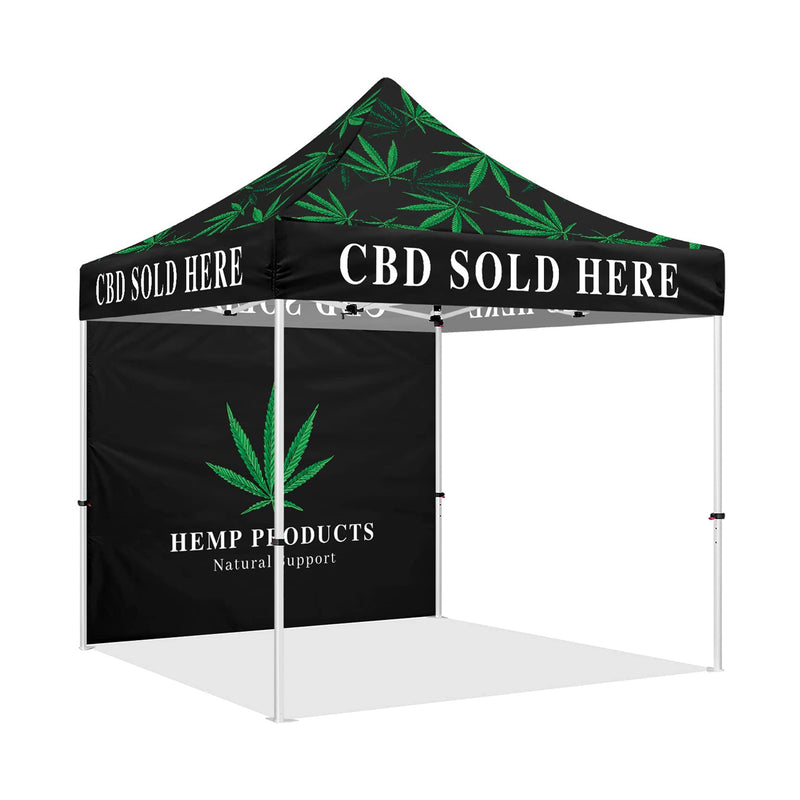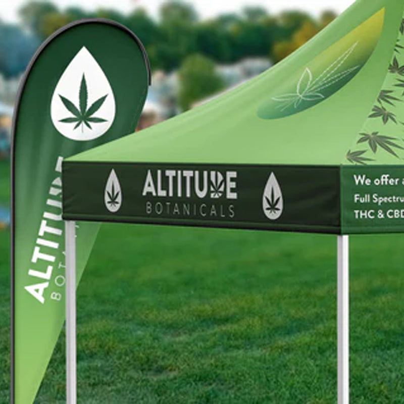 These 10' x 10' custom canopy tents are crafted from durable 600 denier polyester or sustainable GRS-certified fabric, featuring an 8 oz graphic weight for vibrant, weather-resistant branding. Built for convenience and strength, they include a pop-up aluminum frame with 1.6" telescopic legs with three adjustable heights, offers adjustable height from a minimum of 101" to a maximum of 135" making it perfect for outdoor events.