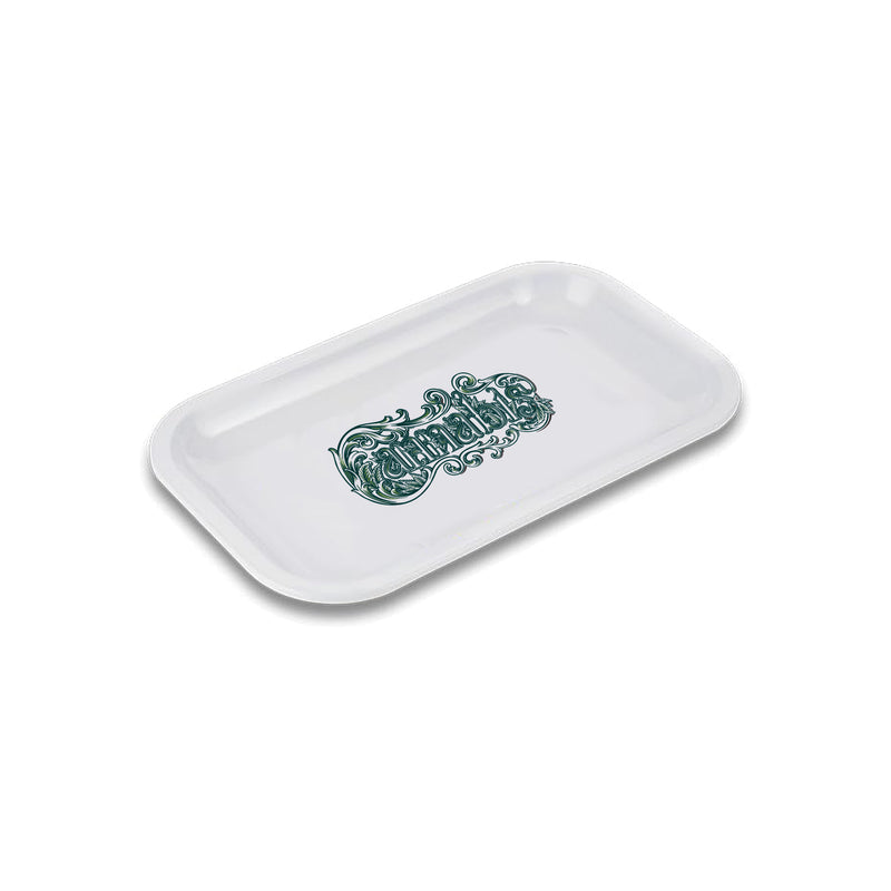 Add your logo to these sturdy metal custom rolling trays! Our custom rolling trays are the best way to keep your brand in front of your customers, every time they roll. The print on top is fully customizable, and we can print as many colors as needed across the top of the tray. Offer a custom rolling tray in your swag bag to create a memorable brand experience. The Black rolling trays are glossy and the white trays are matte.