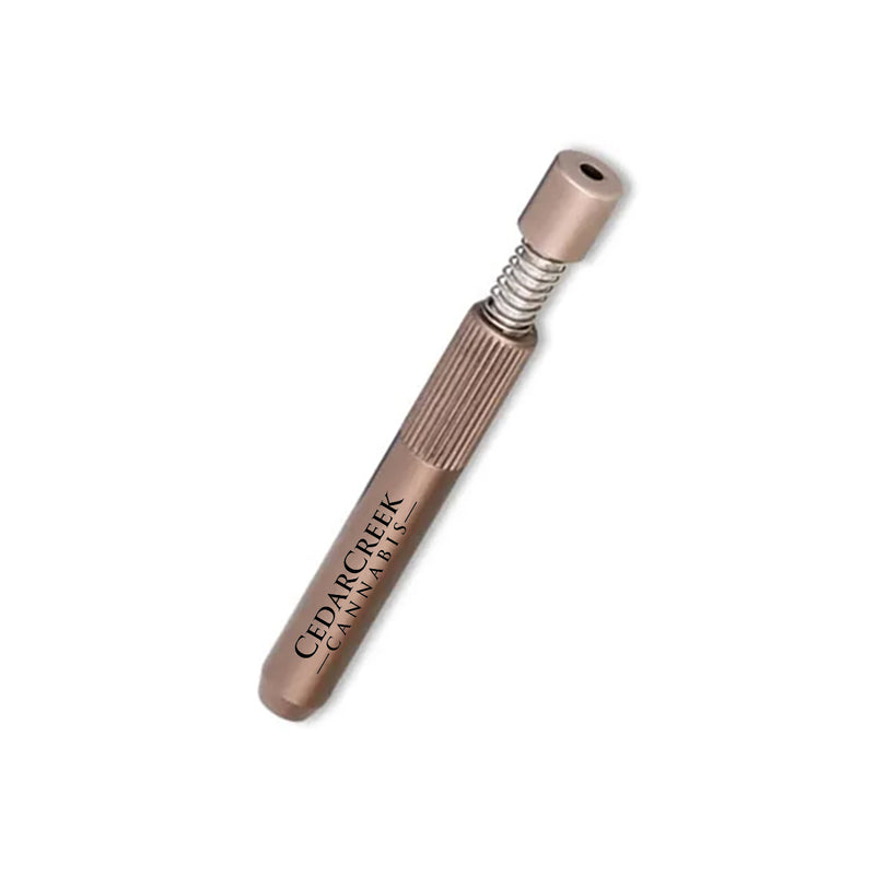 One-hitter pipe is a portable discreet smoking pipe which everyone should have one in his/her pocket. One hitter pipe allows smokers to have a quick toke no matter where the place is. This special hitter features a self-cleaning mechanism that will remove the tobacco ashes just with a single push. Laser etching logo is the best imprinting method to promote business with this pipe, it creates the long-lasting white logo and reminds the users everytime they smoke.