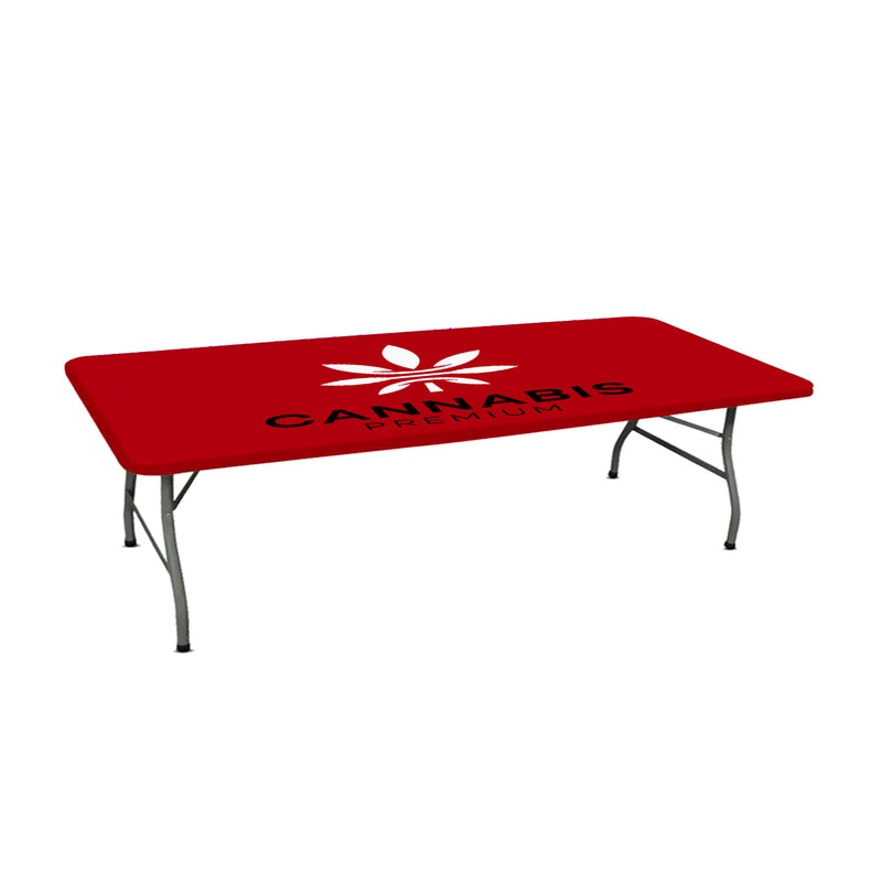 Upgrade your event display with our fitted rectangle table cover, crafted from durable 5.3 oz elastic polyester for a sleek, professional look. These table toppers are perfect for showcasing your logo and making a lasting impression at trade shows and exhibitions.